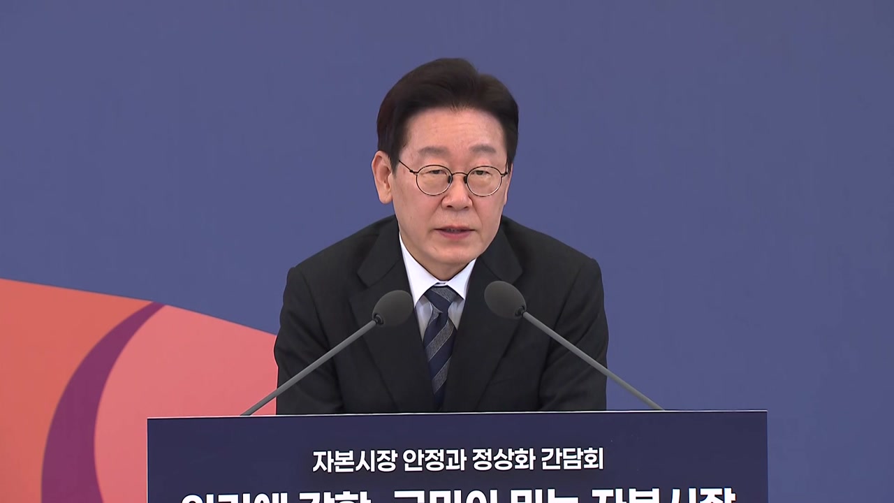 [이 재 명 / 대통령 : 사실은 작년에 2천 5, 6백 선에서 정말 쉬지 않고 조정다운 조정도 없이 6천 중반대까지 올라갔는데 사실 매우 불안한 느낌을 가지고 있었지만, 어쩌면 하나의 계기로 좀 이렇게 다지는 그런 과정을 겪고 있는 것 같기도 합니다. 이럴 때야말로 필요한 조치들을, 필요한 계획 과제들을 잘 해결하는 것이 새로운 출발을 준비하는 길이라는 생각이 들어요. 저는 우리가 하기에 따라서 '코리아 디스카운트'가 아니고 얼마든지 정상 평가를 넘어서서 '코리아 프리미엄'도 가능하다….]