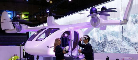 ‘MWC 2023’ 당시 스페인 바르셀로나 전시장에 SK텔레콤 도심항공교통(UAM) 모형이 전시돼 있는 모습(사진=연합뉴스). |