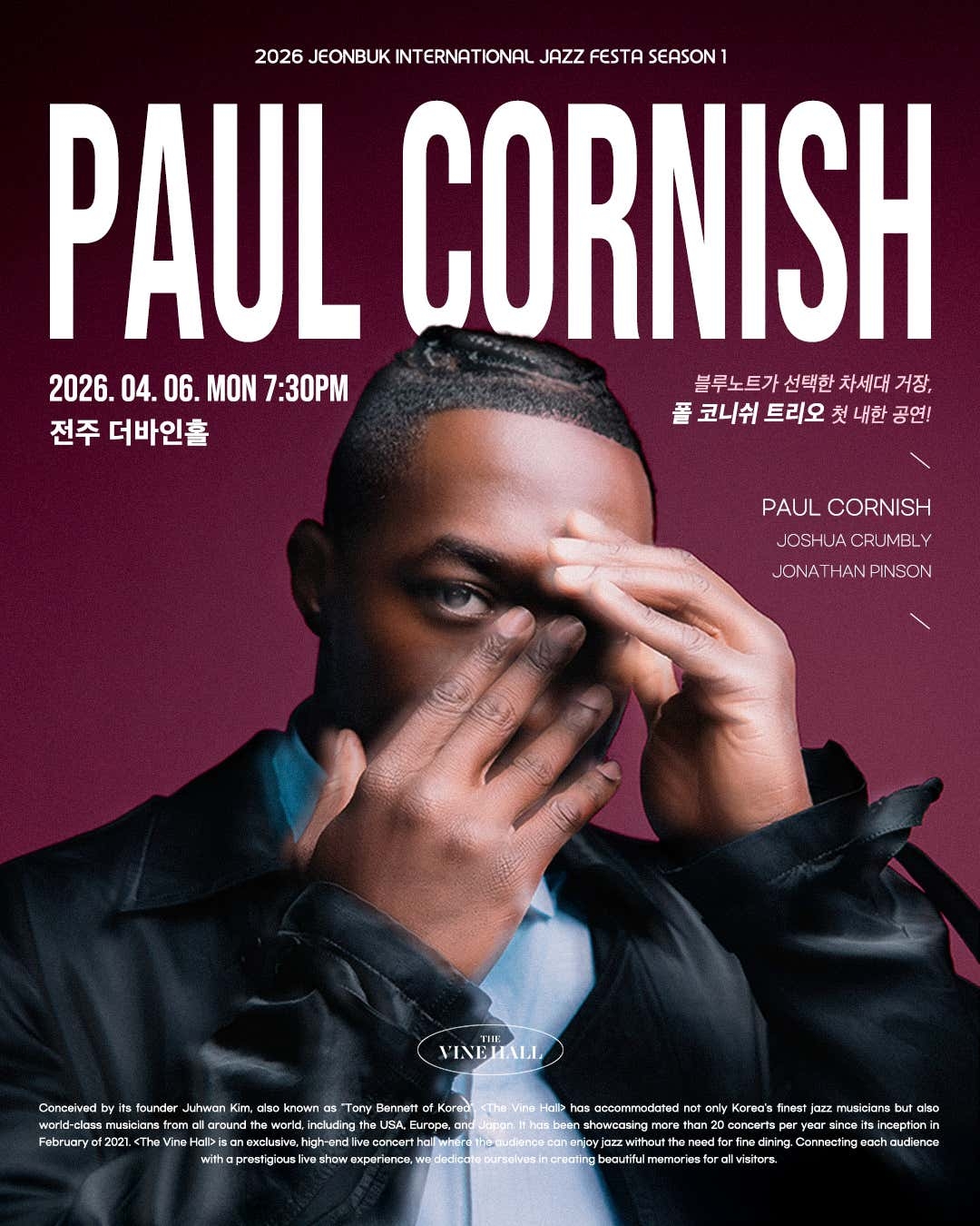 비밥의 거장 버드 파웰과 델로니우스 몽크를 연상시키는 고전적인 연주부터 제이슨 모란, 로버트 글래스퍼 등의 모던 피아니스트의 계보를 잇는 포스트밥 크리에이티브 재즈에 이르기까지, 폴 코니쉬 첫 내한공연은 블루노트의 위대한 유산에 자신만의 독창적인 색채를 더해, 서정적이면서도 파워풀한 사운드의 연주로 21세기 모던 재즈 피아니즘의 정수를 느껴볼 수 있는 특별한 공연이 될 것이다.