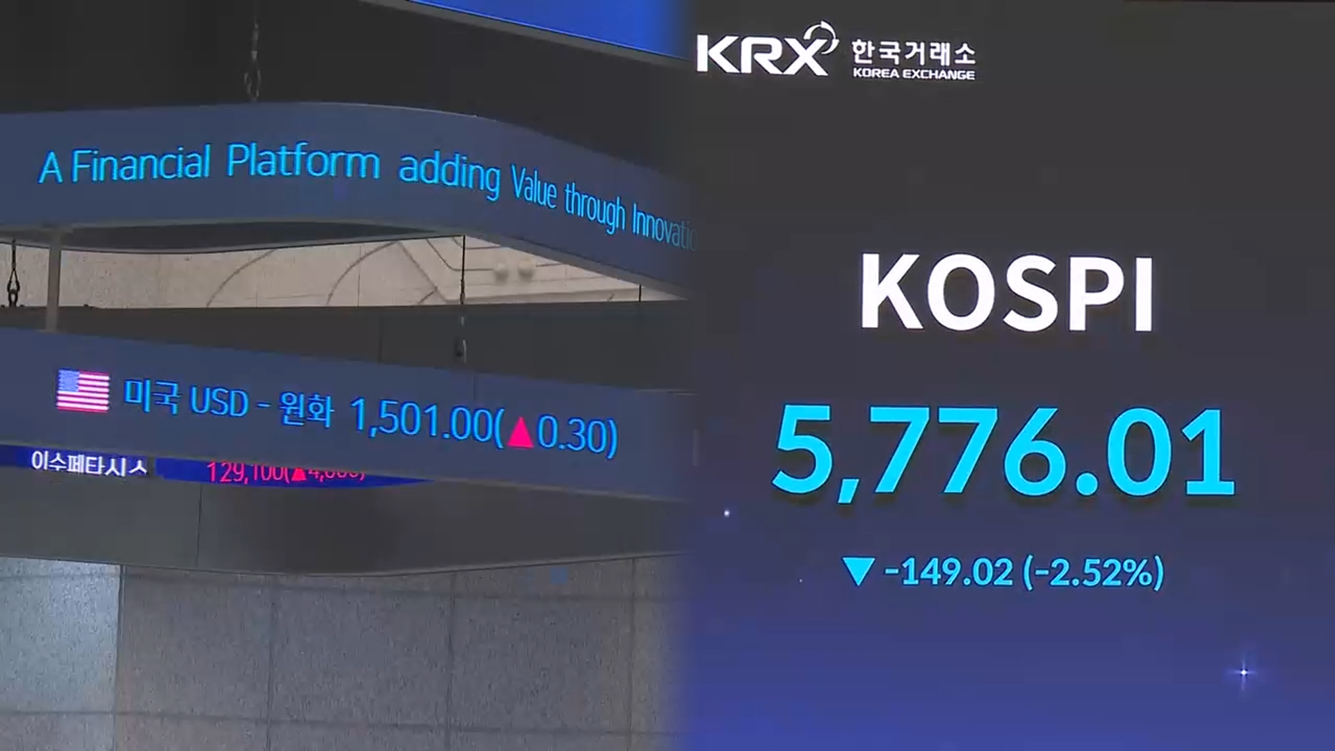 오늘 코스피는 3% 가까이 빠지며 5,700선에서 하락 출발했습니다.