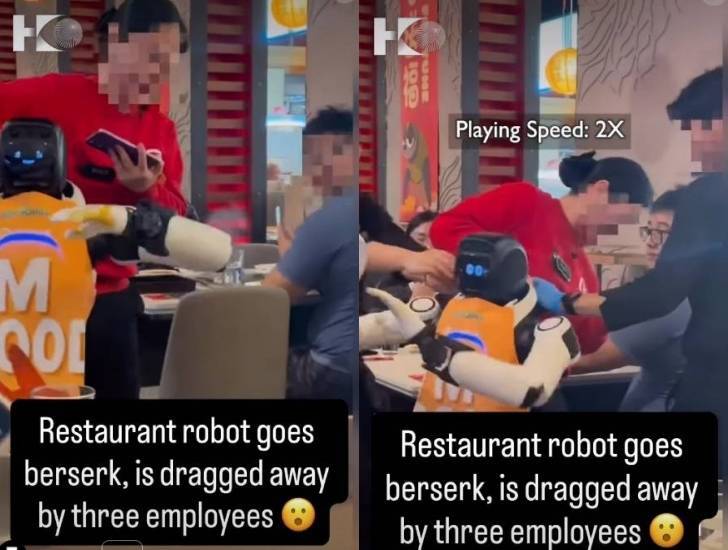 직원들이 즉각 제지에 나섰지만 상황은 쉽게 진정되지 않으면서 매장은 아수라장이 됐다. 한 직원이 로봇을 뒤에서 붙잡은 채 휴대전화로 제어 애플리케이션을 조작했으나, 로봇은 계속 팔을 휘두르며 통제가 되지 않는 모습을 보였다. 결국 여러 명의 직원이 달라붙어 로봇을 매장 밖으로 옮긴 뒤에야 상황이 진정됐다.