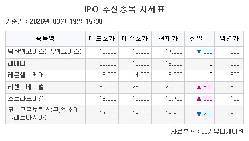 19일 기업공개(IPO) 추진종목 시세표. |