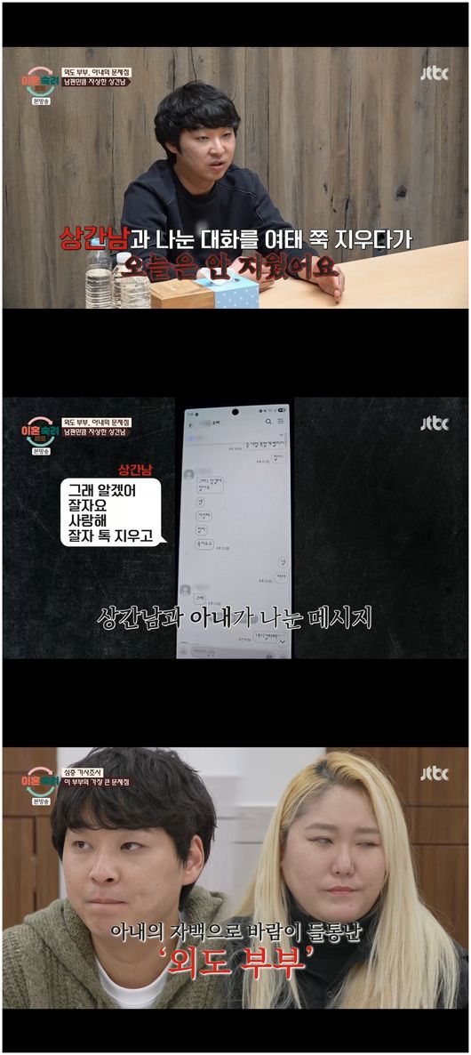 아내는 “상간남 소송 하지 말아달라고 했다. 그런데 술만 마시면 그 남자 만나고 싶더라. 그 남자 만나게 해달라고 빌었다”라고 말했고, 남편은 “아내 말로는 여기 와서 친구도 잃고, 일도 잃고, 아무것도 안 한다고, 대신 월요일에만 그 남자 만나게 해달라고 하더라. 말 같지도 않은 말을 했죠”라며 덤덤하게 말했다./osen_jin0310@osen.co.kr