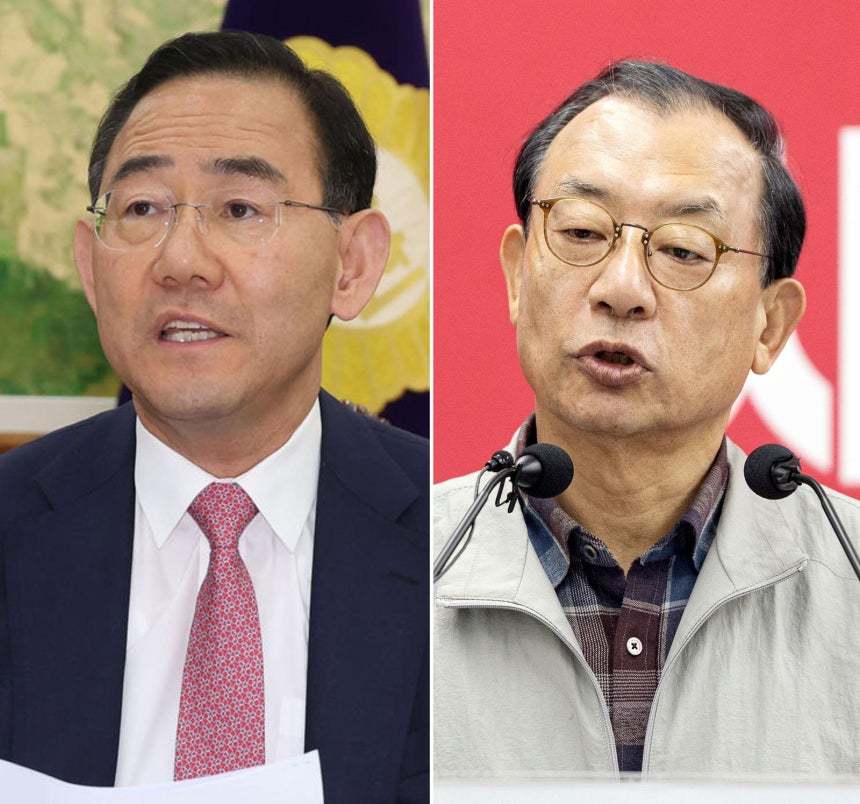대구시장 선거에 뛰어든 국민의힘 6선 중진 주호영 의원(왼쪽), 이정현 공천관리위원장. 뉴시스 |