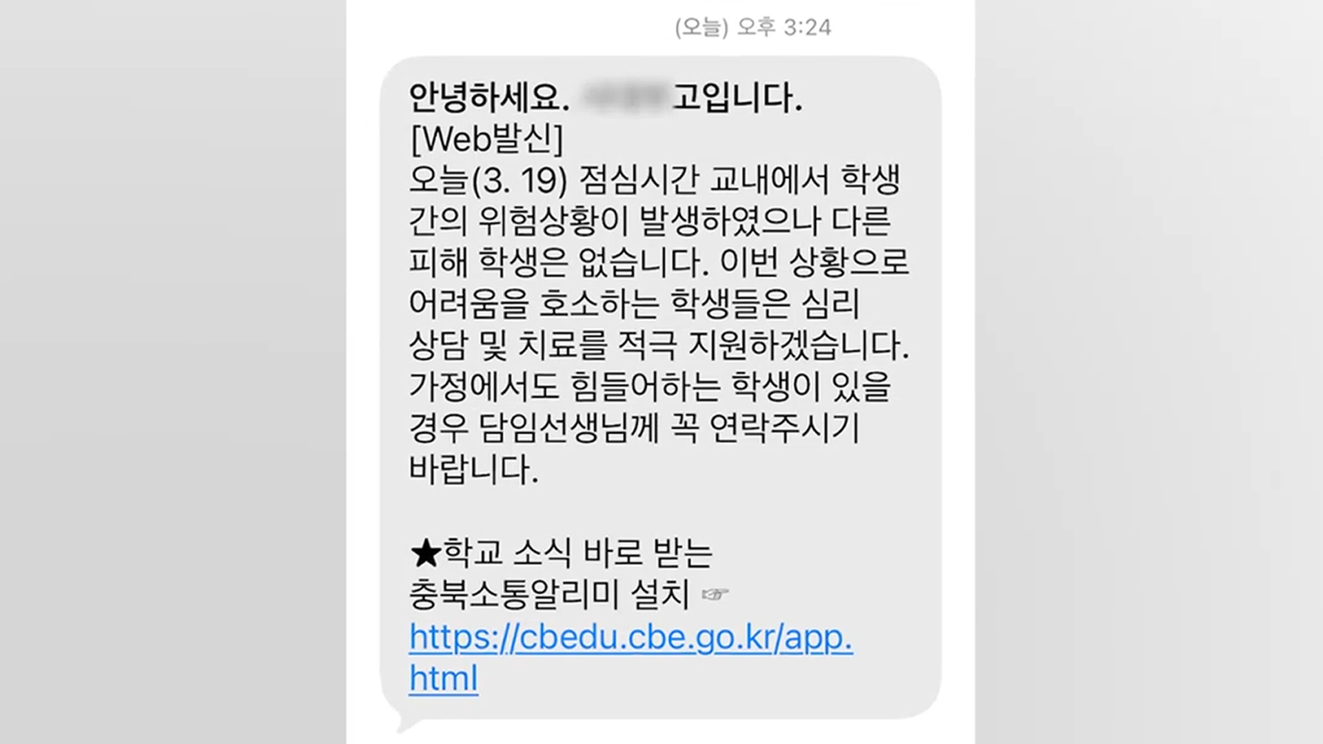 학교 측은 학생들의 상담과 심리 치료를 지원하겠다는 단체 문자를 발송했습니다.