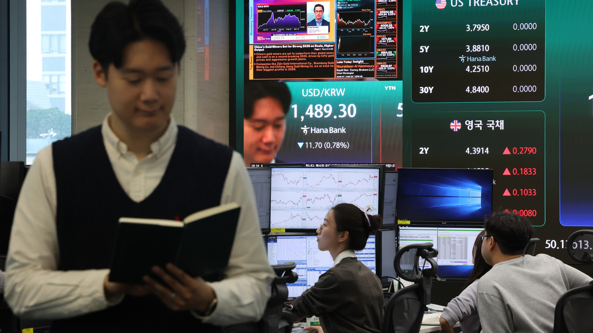 20일 오전 서울 중구 하나은행 본점 딜링룸에서 딜러가 업무를 보고 있다. 연합뉴스 |