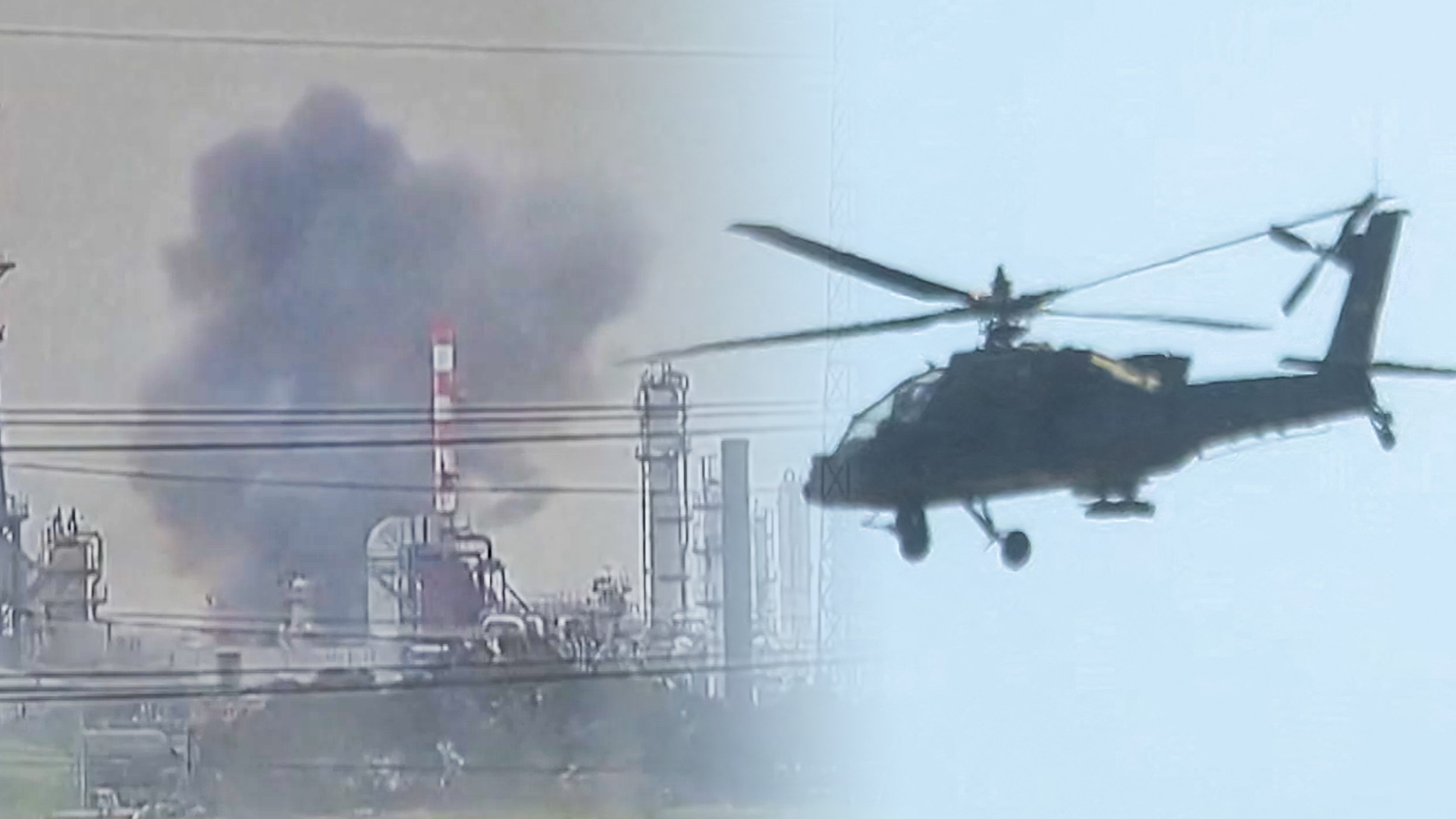 미사일은 요격 시스템에 의해 격추된 것으로 전해졌는데, 파편이 정유 시설로 떨어지면서, 정유 시설이 연기에 휩싸였습니다.