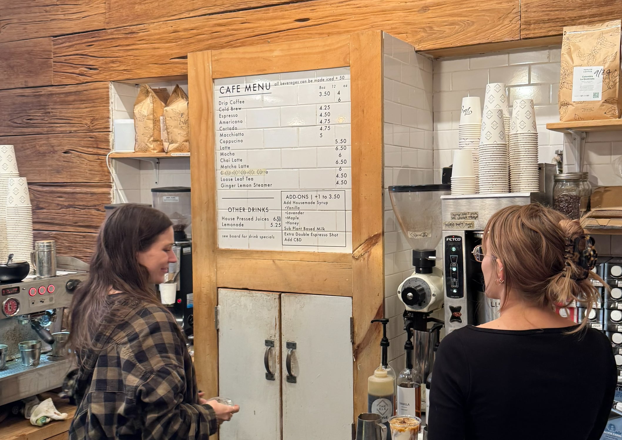 뉴욕 웨스트 빌리지에 위치한 ‘엘크(The Elk)’ 카페의 ‘덤웨이터(Dumb Waiter·사진 가운데 흰색 문)’. 뉴욕처럼 임대공간이 비싸고 좁은 곳에서 유용하기도 하고, 증가하는 인건비를 줄이는데 도움이 되어 근래에 설치가 증가하는 추세다. /박진배 |