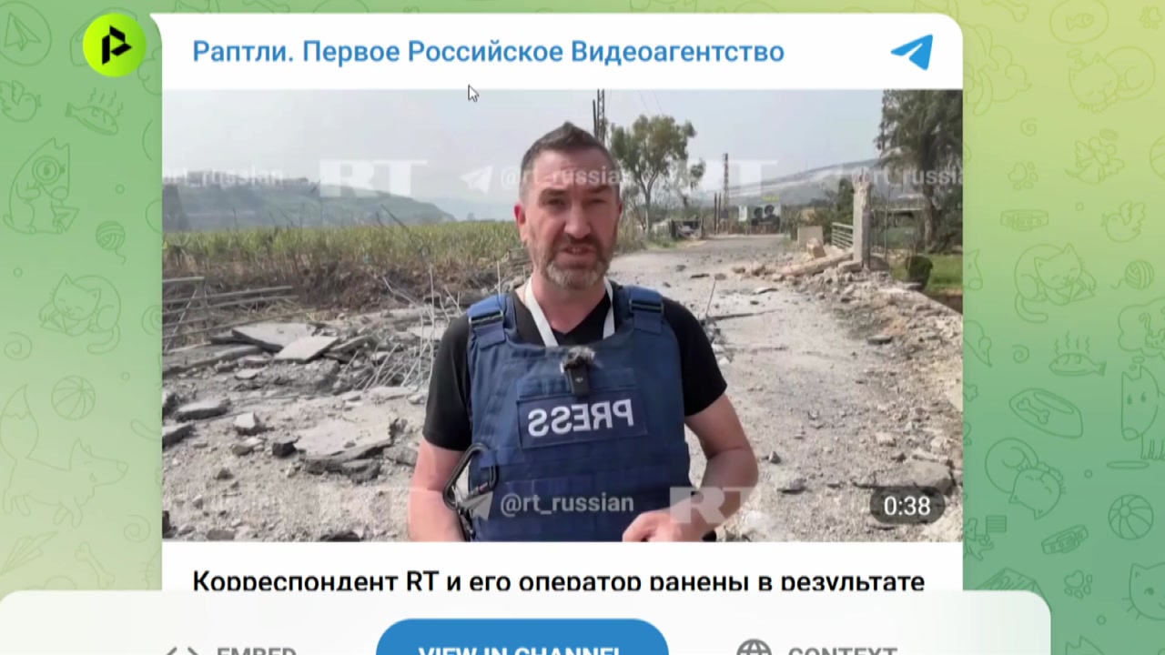레바논 남부 지역에서 방탄 조끼를 입고 생방송 중이던 러시아 기자.