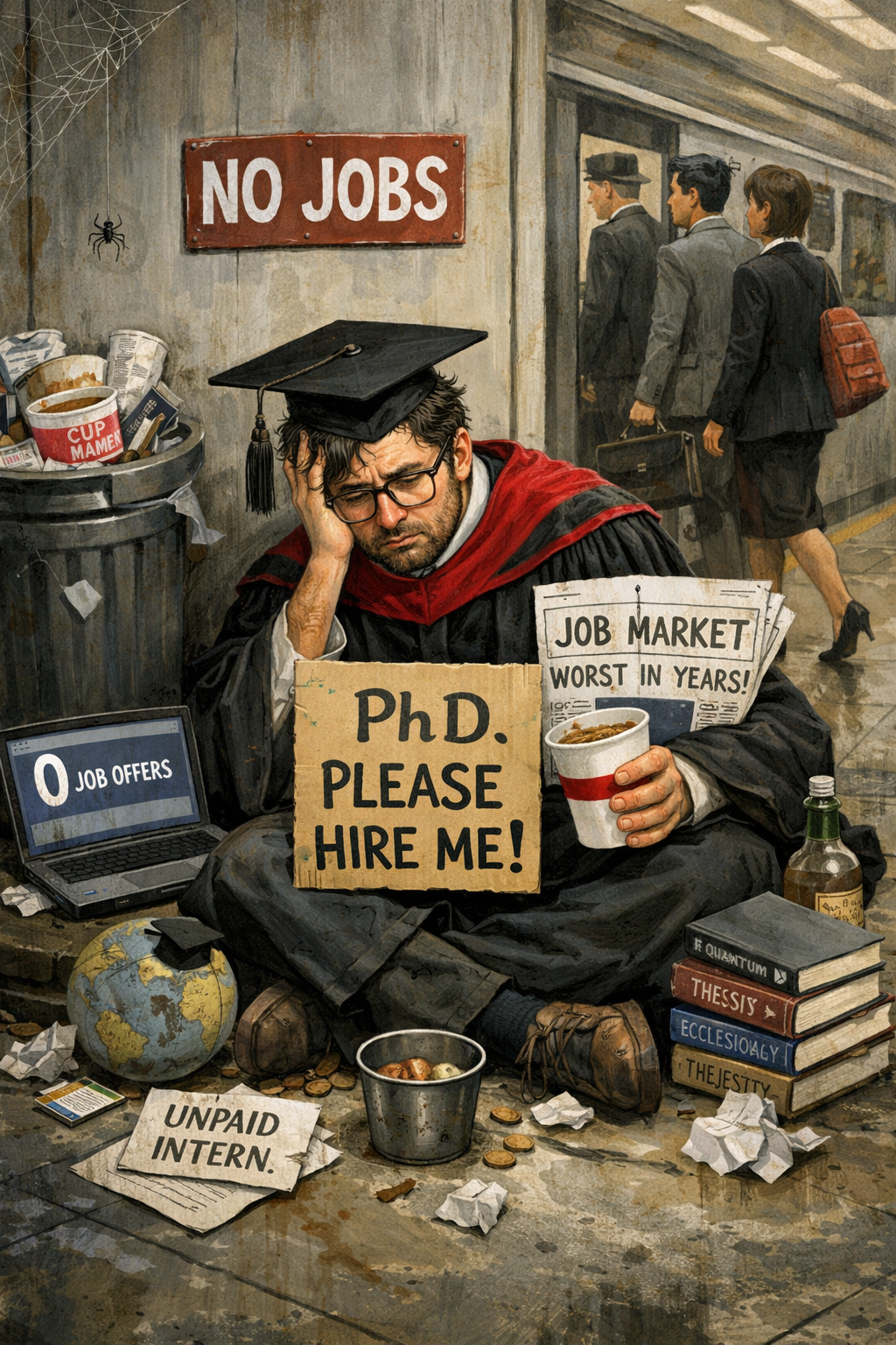 21일 한국직업능력연구원이 발간한 ‘국내 신규 박사학위 취득자의 특성과 초기 노동시장 이행 실태 조사’결과에 따르면 응답자 1만498명 중 3분의 2 가량만 취업에 성공한 것으로 나타났다. 관련 조사에 따르면 국내 박사학위 취득자 중 취업자 비중은 66.7%, 미취업자 비중은 27.7%를 각각 기록했으며 비경제활동인구는 5.6%로 조사됐다.