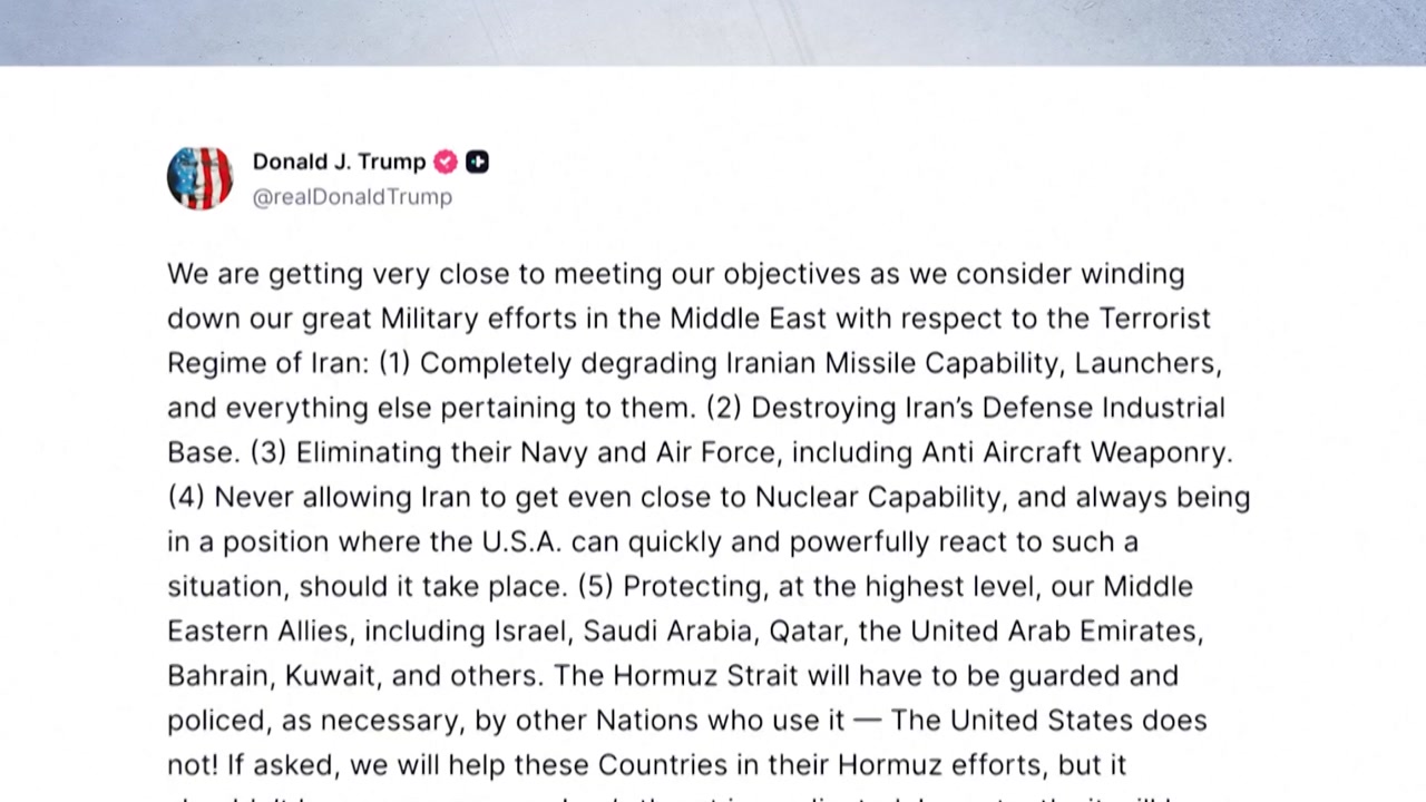 도널드 트럼프 대통령은 이란전쟁에서 목표 달성에 매우 가까워지고 있다며 군사작전의 점진적 축소를 검토하고 있다고 밝혔습니다.