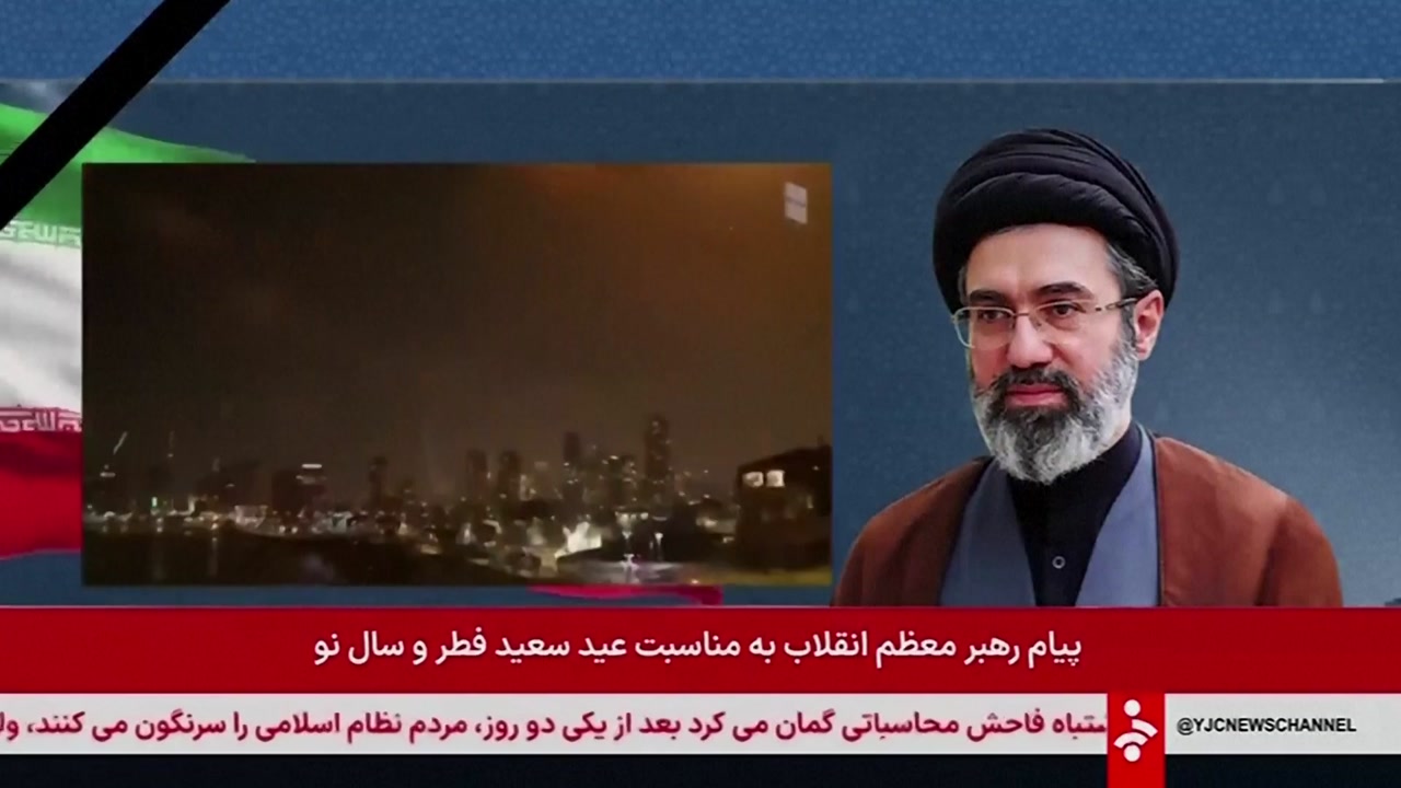 TV 앵커가 대독한 새해 메시지에서 모즈타바는 이란 정권을 전복시킬 것이라 생각한 것은 미국과 이스라엘의 망상이라고 맹비난했습니다.