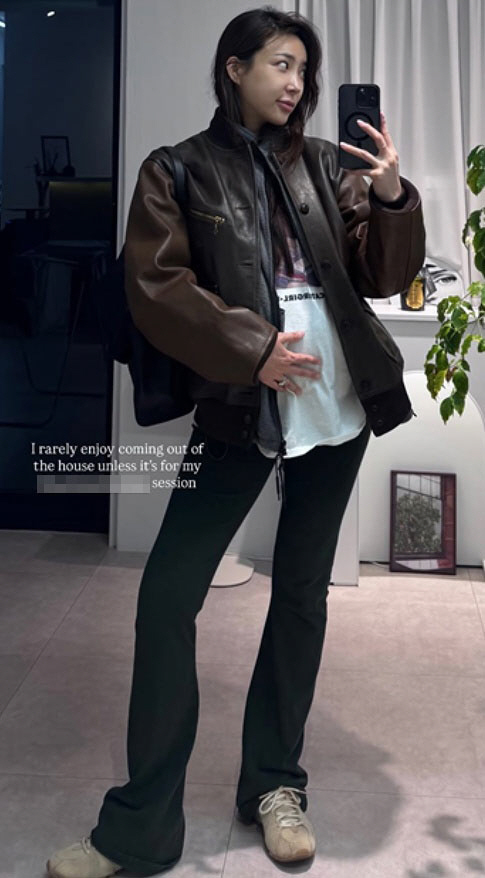 공개된 사진 속 김장미는 편안한 의상을 입은 채 자연스럽게 D라인을 드러내 눈길을 끌었다. 임신 중임에도 변함없이 늘씬한 몸매를 유지하고 있어 시선을 모았다.