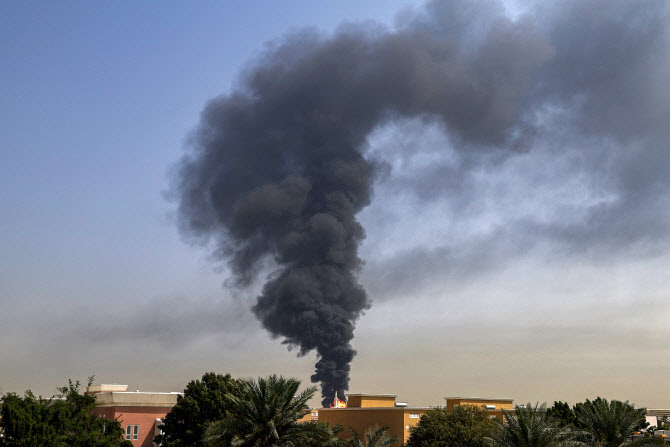 두바이 국제공항 인근에서 발생한 화재로 연기 기둥이 솟아오르고 있다. (사진=AFP) |