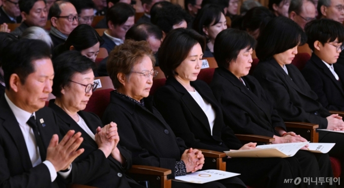 [서울=뉴시스] 고범준 기자 = 김혜경 여사가 14일 서울 원불교 소태산기념관에서 열린 故 이해찬 前 총리 49재에 참석해 기도하고 있다. 2026.03.14. bjko@newsis.com /사진= |