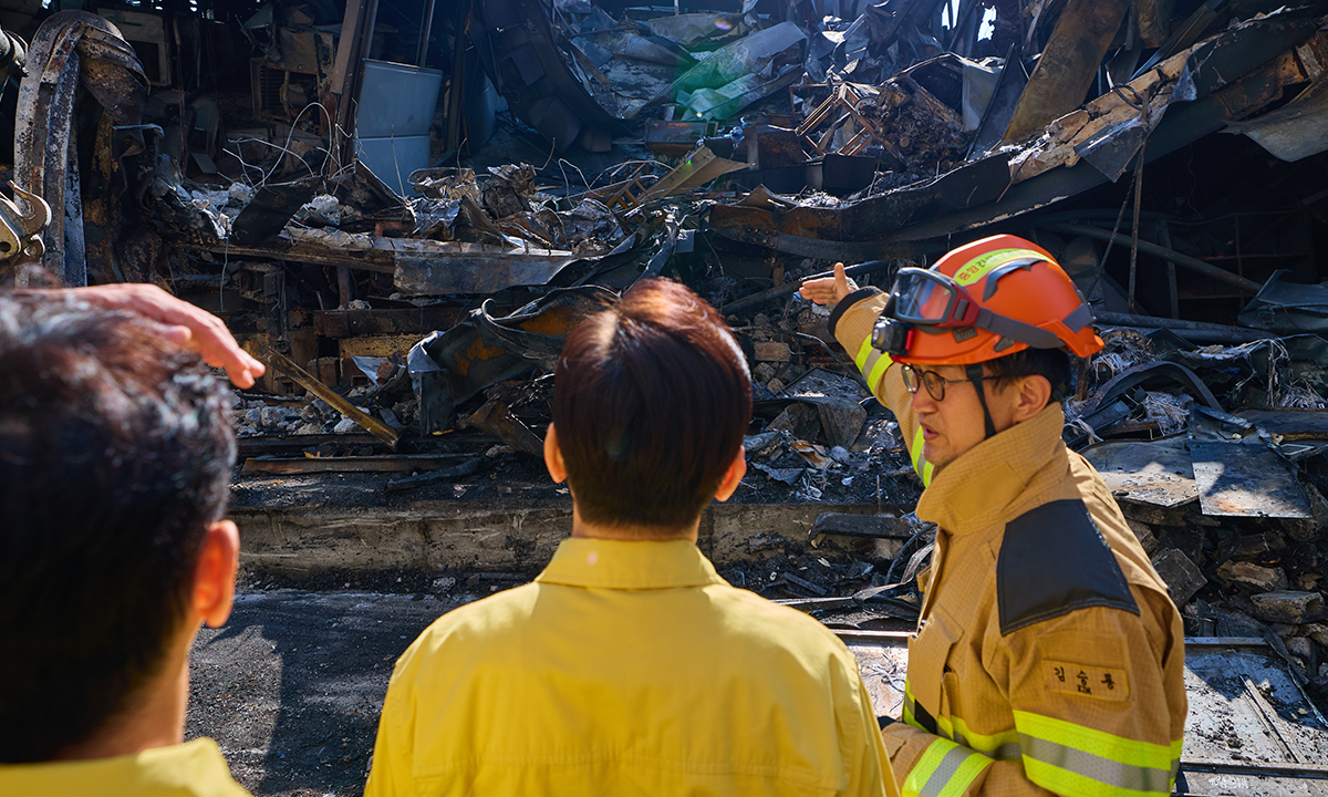 피해상황·구조활동 점검…녹은 외벽 보며 “2차 사고 안나게 잘 챙겨달라”