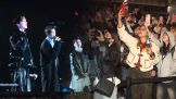 입장권을 구하지 못한 팬들은 바리케이드 밖 거리에 모여 앉았습니다.