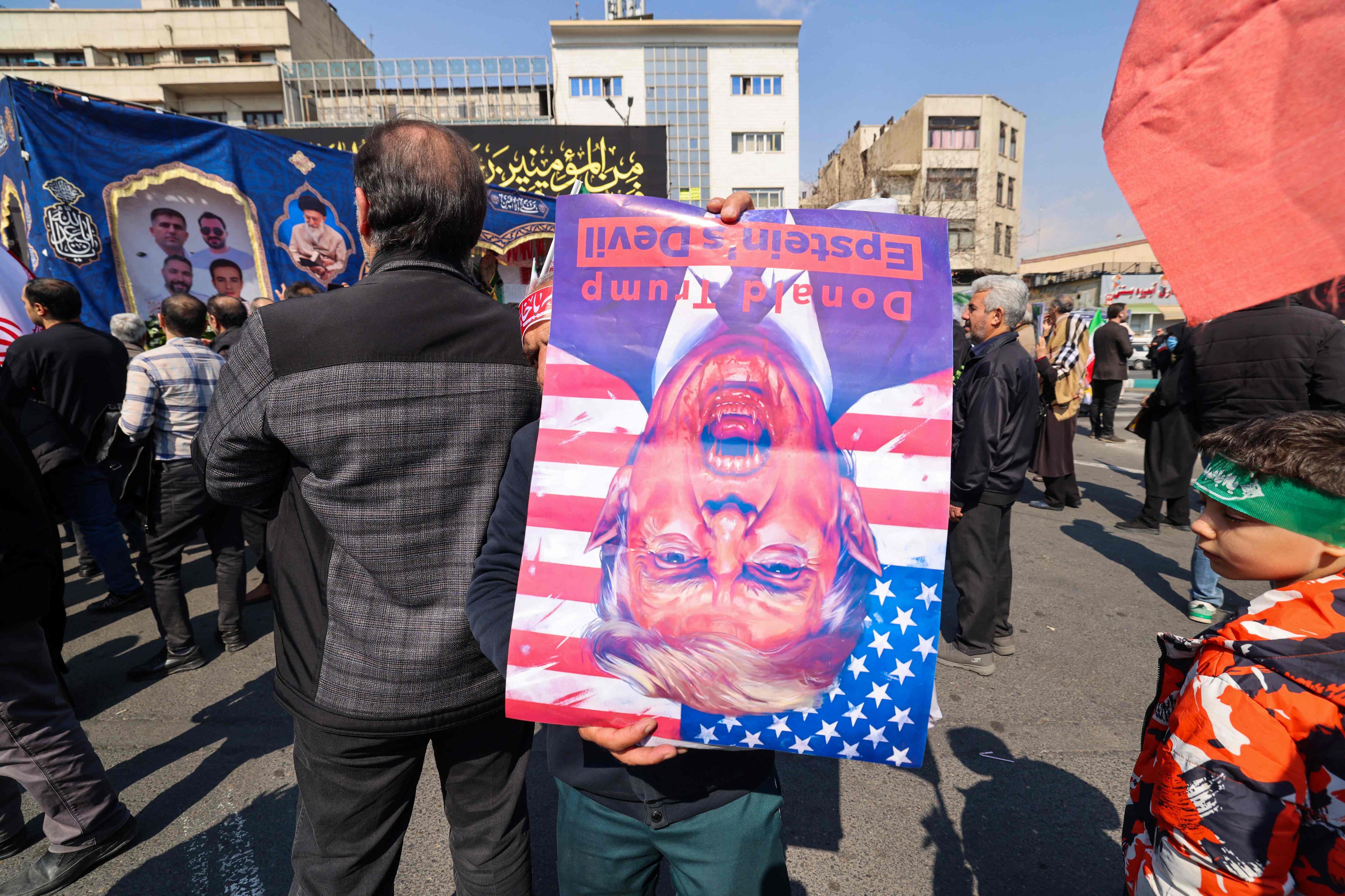 이란 테헤란에서 도널드 트럼프 미국 대통령의 포스터를 들고 있는 사람 ./ AFP 연합뉴스 |