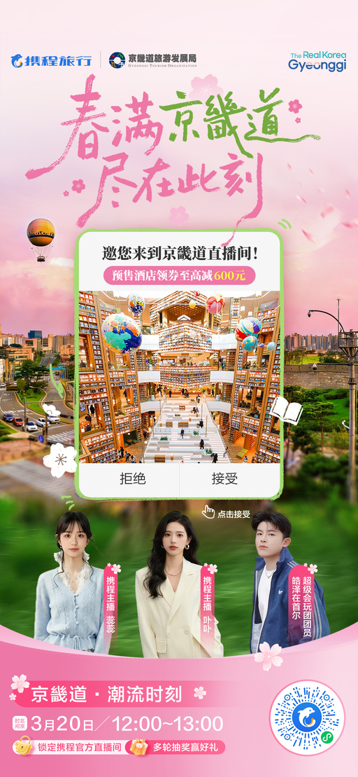 경기관광공사는 20일부터 21일까지 이틀간 스타필드 수원 별마당도서관에서 중국 최대 여행 플랫폼 씨트립(트립닷컴 그룹)과 함께 중국 여행객을 대상으로 경기관광 홍보 및 상품 판매를 위한 온라인 라이브커머스를 진행한다고 밝혔다.