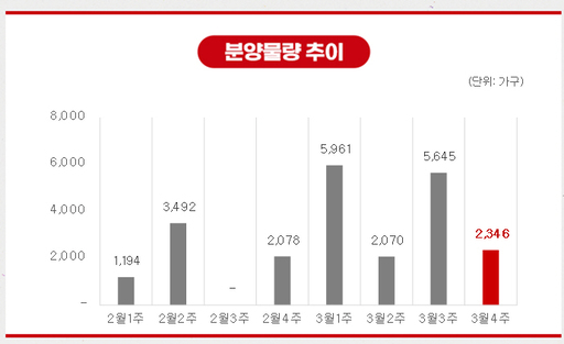 3월 마지막 주에는 전국 6개 단지 총 2346가구가 분양을 시작한다. 이 가운데 일반분양 물량은 2117가구다.