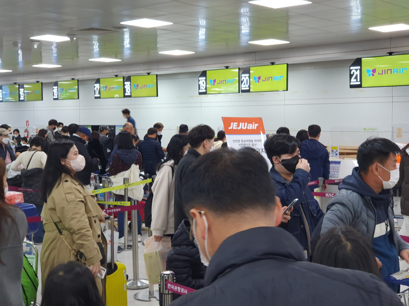 한국공항공사는 자사 관할 공항에서 규정 위반이 많은 데 대해 국내선 승객이 많은 특성상 승객 중 모바일 및 셀프 체크인 방식을 이용하는 비율이 80%로 인천공항보다 현저히 높은 점을 들었다.