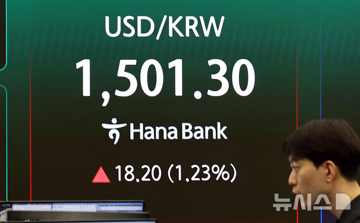 [서울=뉴시스] 최진석 기자 = 서울 외환시장에서 원·달러 환율이 전 거래일(1483.1원)보다 17.9원 오른 1501.0원에 주간 거래를 마감한 지난 19일 서울 중구 하나은행 딜링룸에 환율 시세가 보이고 있다. 2026.03.19. myjs@newsis.com |