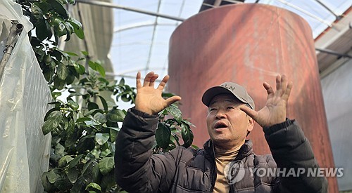 하우스감귤 난방비 급등 현황 설명하는 강성훈 씨 |