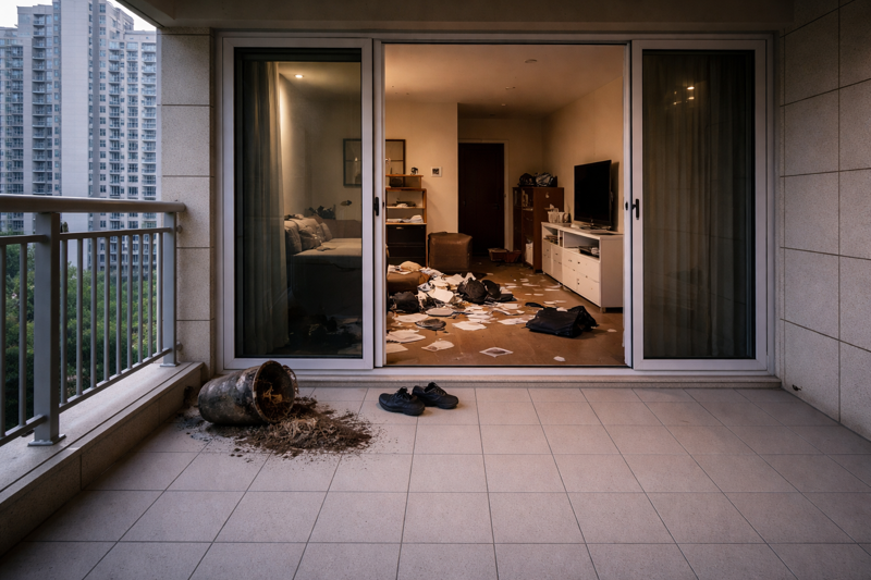 베란다를 통해 무단으로 들어가 금품을 훔친 절도범에게 피해를 입은 아파트의 모습을 AI를 이용해 이미지를 생성. /사진=챗GPT |
