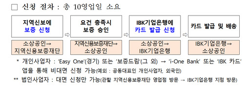 비즈플러스카드 보증 신청은 23일부터 지역신보 '보증드림' 앱으로 할 수 있으며, 보증 승인 후 IBK기업은행 영업점을 방문해 카드발급을 신청할 수 있다. 오는 4월 중순부터는 카드발급 신청도 앱으로 편리하게 할 수 있다.