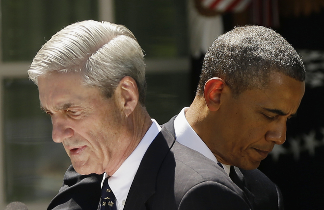 로버트 뮬러(왼쪽) 전 FBI 국장과 버락 오바마 전 대통령. 워싱턴DC AP 연합뉴스 |
