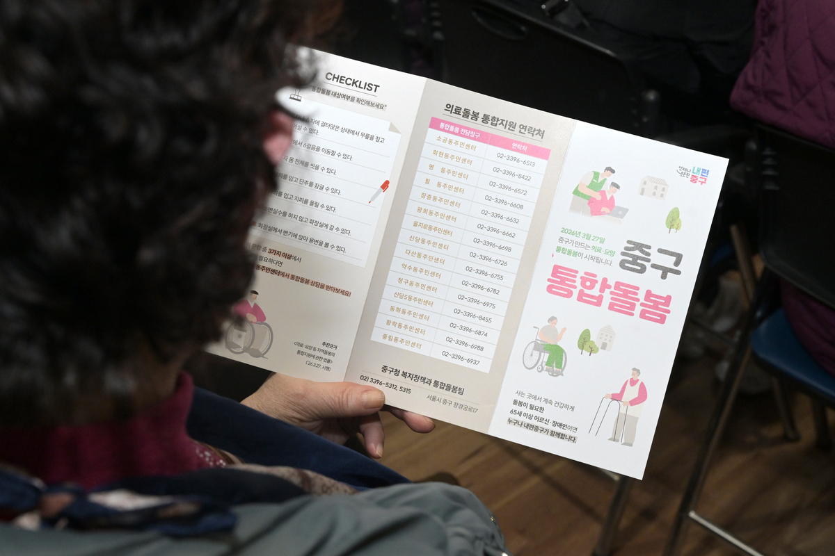 서울 중구가 최근 개최한 통합돌봄 설명회에서 한 주민이 안내문을 읽고 있다. 중구 제공 |