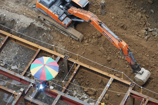 폭염이 이어진 지난해 8월 5일 대구 한 건설 현장 근로자가 햇볕을 막아주는 파라솔 아래에서 작업을 하고 있다.[사진=연합뉴스] |