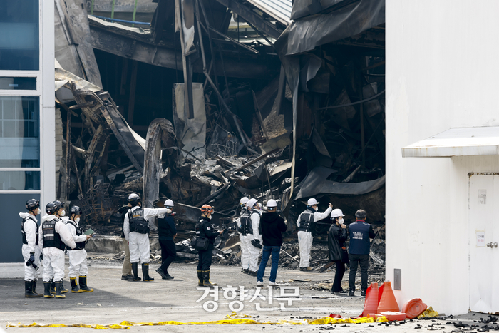 이번 화재는 전소된 공장 건물 1층에서 시작된 것으로 추정되지만 정확한 발화 지점과 화재 원인은 확인되지 않았다. 화재 수습이 마무리 됨에 따라 경찰과 소방, 노동당국 등 유관기관은 합동감식을 통해 정확한 화재 원인과 책임 소재 규명에 나설 예정이다. 관계기관은 이날 현장에서 합동감식 사전회의를 열고 유족 대표와 함께 1차로 현장 상황을 확인했다. 경찰 관계자는 “오늘 경찰과 소방, 국과수 등 유관기관이 모여 합동 감식 전 안전 대책과 향후 감식 방향을 논의했다”며 “(건물) 안전진단을 통해 안전이 확보되면 합동 감식을 실시할 계획”이라고 밝혔다.