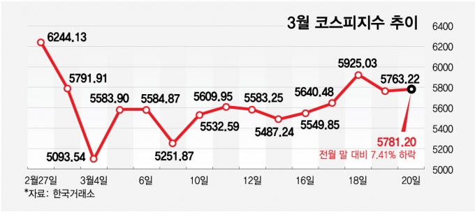 3월 코스피지수 추이/그래픽=최헌정 |