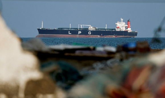호르무즈 해협 인근에 정박한 LPG선 [사진=연합뉴스] |