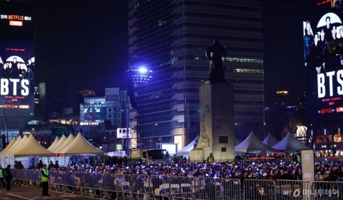 지난 21일 서울 광화문에서 열린 BTS(방탄소년단) 공연은 단순한 컴백 무대를 넘어 K문화 산업의 위상을 보여준 상징적 장면으로 평가된다. 광장을 메운 대규모 인파와 190개국 생중계는 한국 문화가 국내 소비를 넘어 국가 브랜드와 산업 구조를 움직이는 단계에 들어섰음을 드러냈다. 역사적인 상징 공간인 광화문이 한국의 '소프트파워'를 보여주는 무대가 됐다는 평가가 나온다.