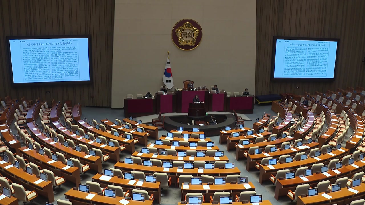 국회 본회의장에서는 검찰 조작기소 국정조사 계획서에 대한 표결이 곧 진행됩니다.