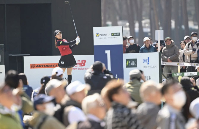 22일 일본 지바현의 무라사키 컨트리클럽에서 열린 JLPGA 투어 V포인트·SMBC 레이디스 골프 토너먼트 최종 3라운드. 수많은 일본 갤러리들이 박현경의 티샷을 지켜보고 있다.(사진=JLPGA 투어 SNS) |