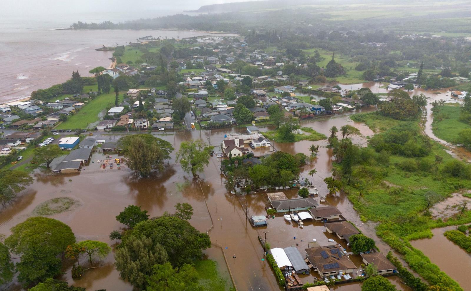 미국 하와이주 호놀룰루에서 20일 홍수로 주택들이 침수돼 있다. 전날 밤부터 이날 새벽까지 세계적인 관광지이며 호놀룰루가 위치한 하와이주 오아후섬에 폭우가 쏟아지면서 하천이 범람하고 도로, 차량, 주택이 침수됐다. 조시 그린 하와이 주지사는 이번 홍수가 “지난 20년간 가장 큰 규모”라며 전체 피해액이 10억 달러(약 1조5000억 원)를 넘어설 수 있다고 전망했다. 인명 피해는 없지만 하와이주는 120년 된 와히아와댐의 붕괴 가능성을 경고하며 주민 5500명에게 대피령을 내렸다.