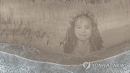 영국 해변에 그려진 힌드 라자브의 대형 초상화 |