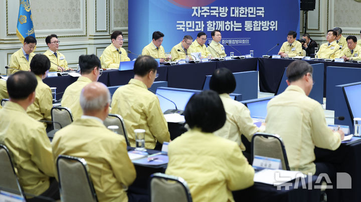 [서울=뉴시스] 고범준 기자 = 이재명 대통령이 23일 청와대에서 열린 제59차 중앙통합방위회의에서 발언하고 있다. 2026.03.23. bjko@newsis.com