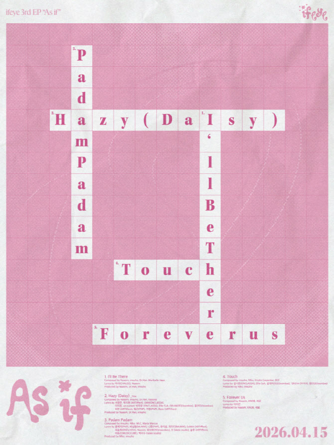 소속사 하이헷엔터테인먼트는 “업계 내 최정상급 스태프들과 호흡을 맞춰 앨범의 완성도를 끌어올렸다. 봄과 어울리는 감성과 다양한 장르의 음악으로 이프아이의 매력을 더욱 선명하게 보여줄 것”이라고 전했다.