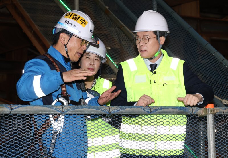 정원오 더불어민주당 서울시장 예비후보가 23일 오전 서울 강남구 영동대로 지하공간 복합개발 건설공사 현장을 방문, 1공구 현장을 둘러보고 있다. 뉴스1