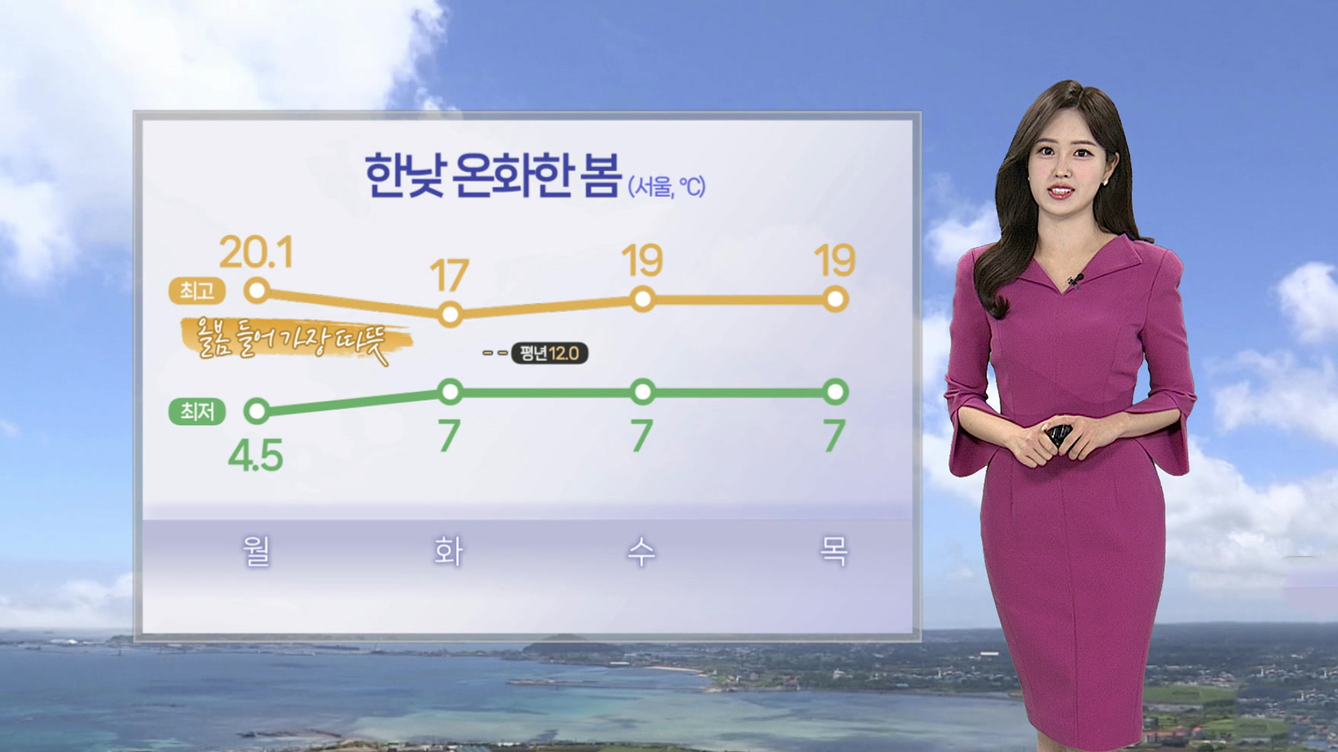 자세한 지역별 기온도 보시면 내일 아침 서울 7도, 대전 4도로 출발해서 한낮엔 서울 17도 대전 19도까지 오르겠고요.