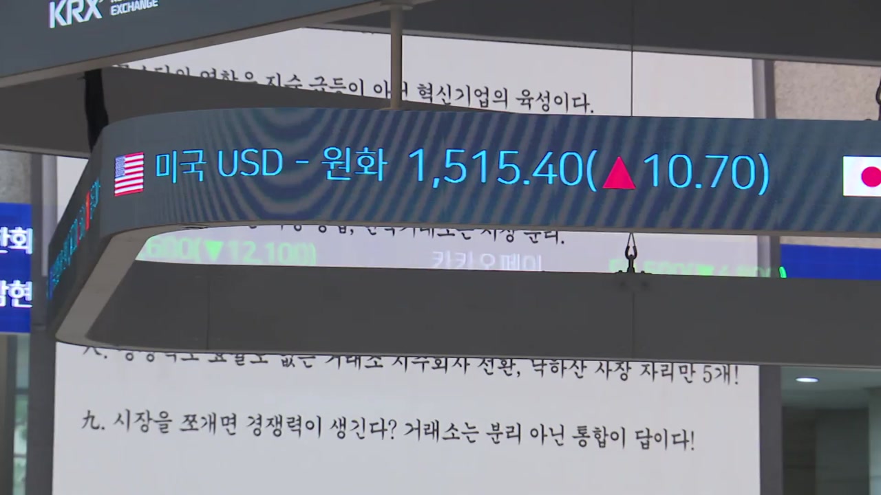 고유가에 더해 미국 금리 인하 기대감도 꺾이면서 환율이 1,517원대를 찍었습니다.