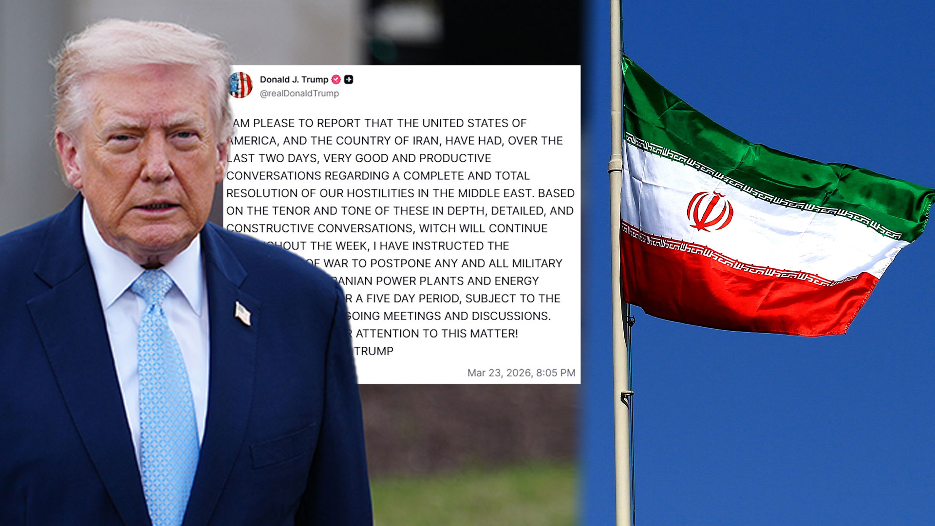 특히 국방부에 이란의 발전소와 에너지시설을 겨냥한 공격을 5일 동안 미루라고 지시했다고 언급했습니다.