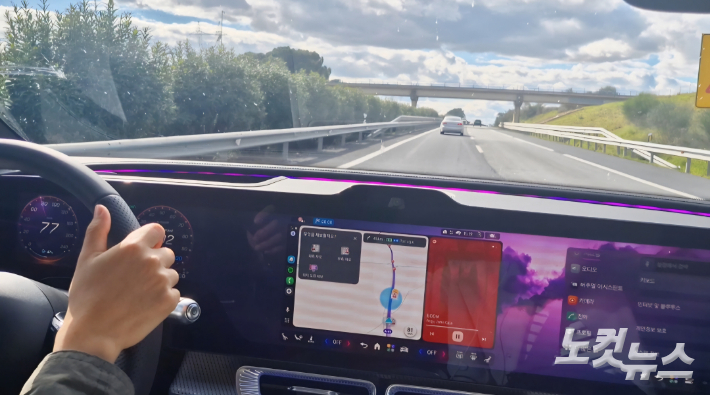 현재 유럽에서 상용화된 자율주행은 레벨 2 수준으로, 운전자가 전방을 주시하는 조건 아래 차량이 조향과 가속·감속을 보조하는 방식이다. 포르투갈 현지 고속도로에서 직접 확인한 결과, 주행 속도를 시속 120㎞로 설정한 상태에서 앞 차량이 갑자기 끼어들자 시스템이 즉각 속도를 줄이며 안전 거리를 유지했다. 장애물이 사라지면 원래 설정한 속도로 다시 주행했다. 차선 변경도 자연스러웠다. 방향 지시등만 켜면 차량이 스스로 주변 상황을 판단해 원하는 방향으로 부드럽게 이동했다.