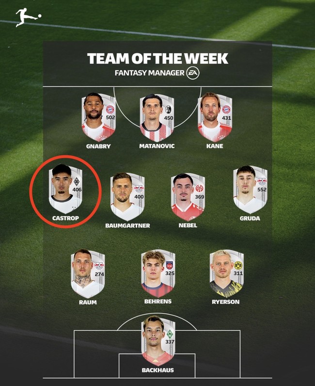 [인터풋볼=주대은 기자] '혼혈 태극전사' 옌스 카스트로프가 독일 분데스리가 라운드 베스트11에 선정됐다.
