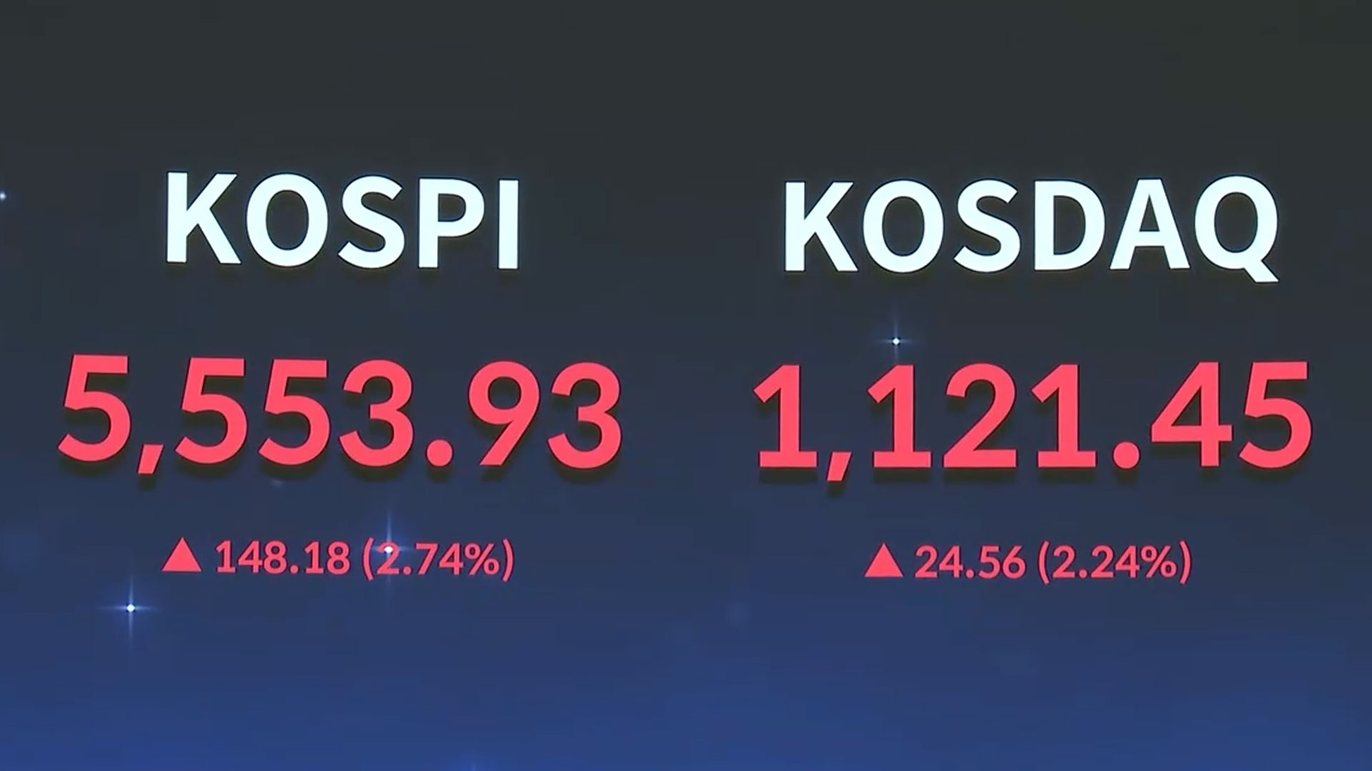 오늘(24일) 코스피는 어제보다 2.74% 오른 5,553.93에 장을 마쳤습니다.