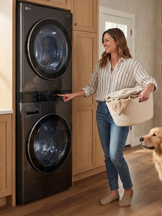 LG 워시타워는 세탁기와 건조기를 타워형으로 결합한 제품이다. 주방과 발코니 확장으로 세탁 공간이 줄어들면서 세탁기와 건조기를 위아래로 쌓는 가구가 늘어나는 주거 트렌드 변화를 반영한 것이다. LG 워시타워는 동급의 드럼 세탁기와 건조기를 위아래로 설치할 때보다 높이가 약 9cm 낮다.